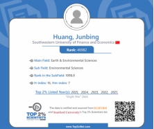 学院黄俊兵教授入选2025“终身科学影响力排行榜”和“年度影响力排行榜”两大榜单。