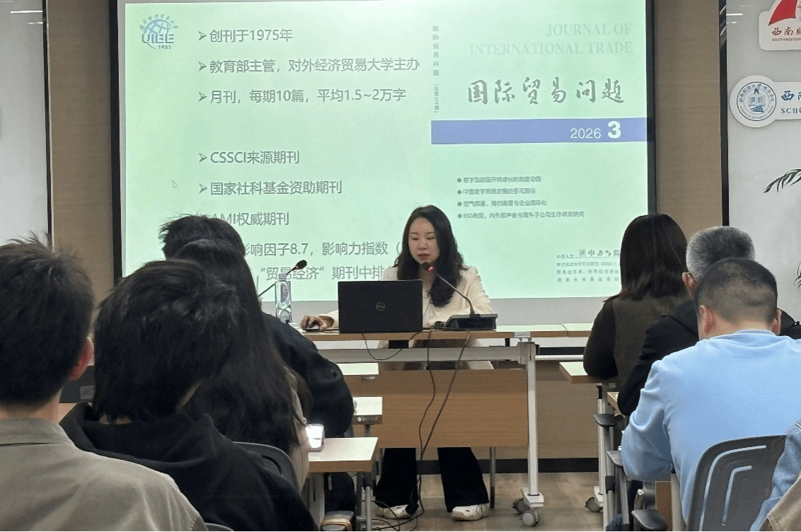 本次讲座吕越教授围绕期刊定位、选题热点、审稿流程、论文写作与课题申报五大核心内容展开系统讲解。其中重点介绍刊文热点选题:一是数字贸易与数字化转型,二是全球价值链产业链供应链韧性与安全,三是制度性开放与高标准自由贸易区网络,四是绿色发展,五是高质量共建“一带一路”与人类命运共同体,六是新质生产力与国际贸易。并详细阐述2026年前沿选题方向,主要包括:国际经济理论前沿问题研究、利用人工智能大数据分析的国际经济学经验研究、开放经济对收入分配和共同富裕的影响研究等。